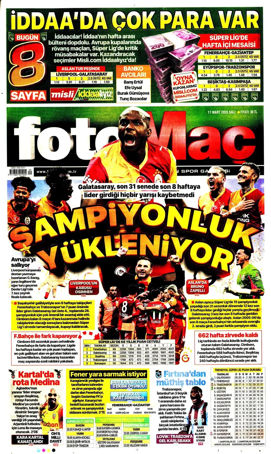 Aslan koptu gidiyor! Spor basını bugün ne yazdı? (17 Mart)