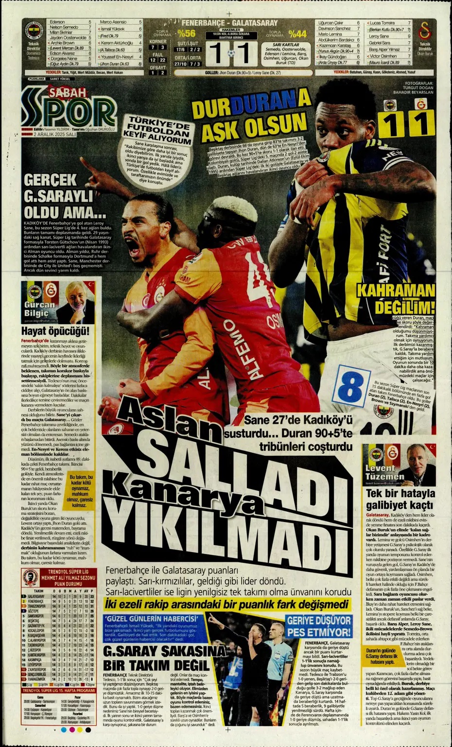 Aslan salladı kanarya yıkılmadı! Spor basını bugün ne yazdı? (2 Aralık)