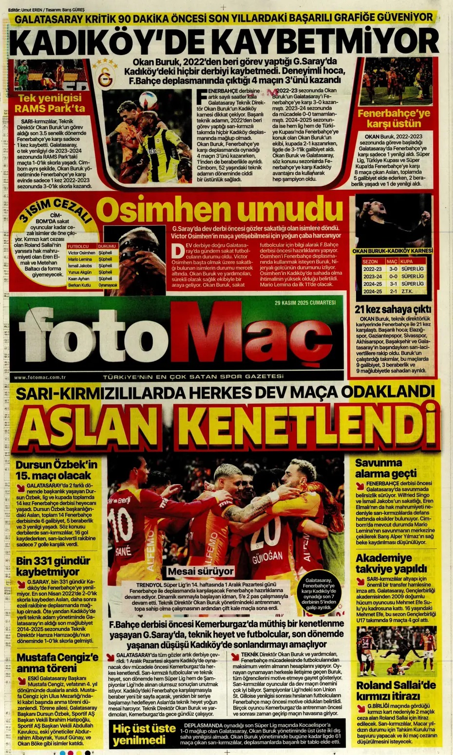 Bu derbi farklı! Spor basını bugün ne yazdı? (29 Kasım)