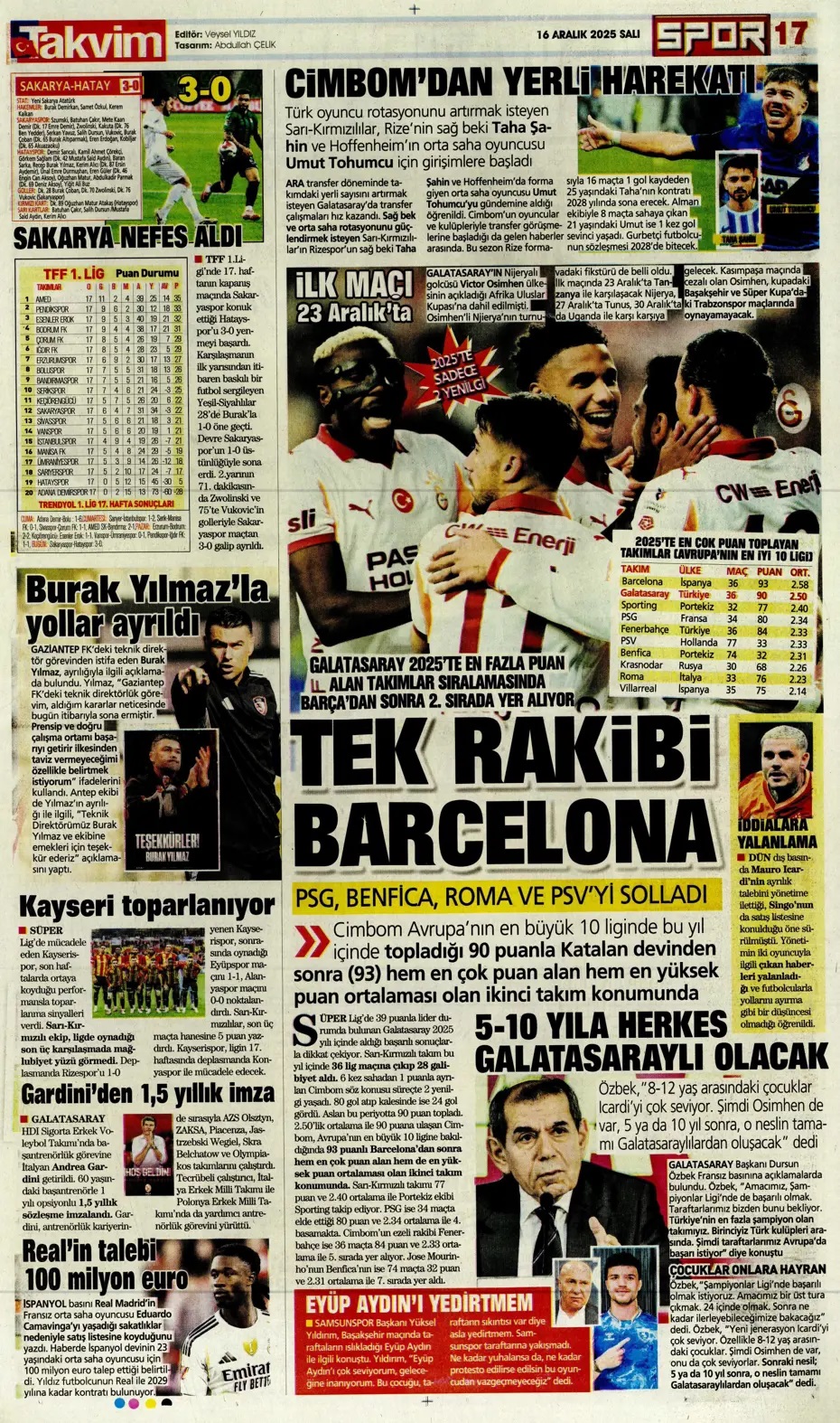 Fener 4 köşe! Spor basını bugün ne yazdı? (16 Aralık)