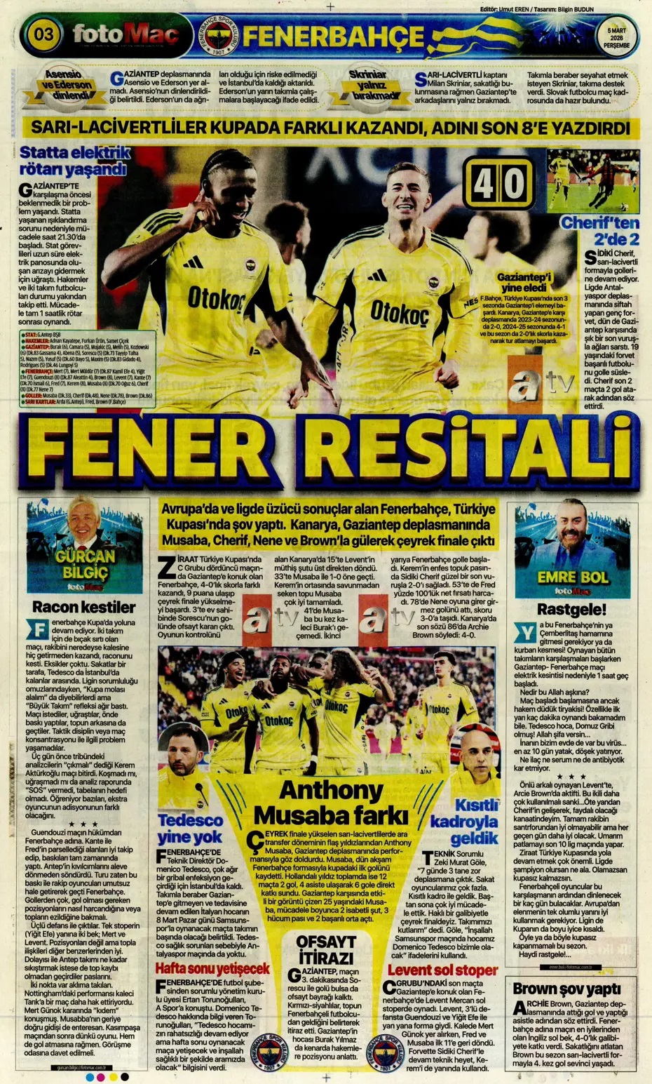 Fenerbahçe resitali! Spor basını bugün ne yazdı? (5 Mart)