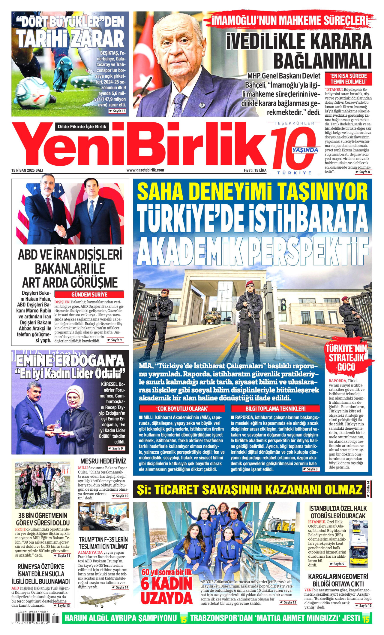 Gazeteler bugün ne yazdı? (15 Nisan)