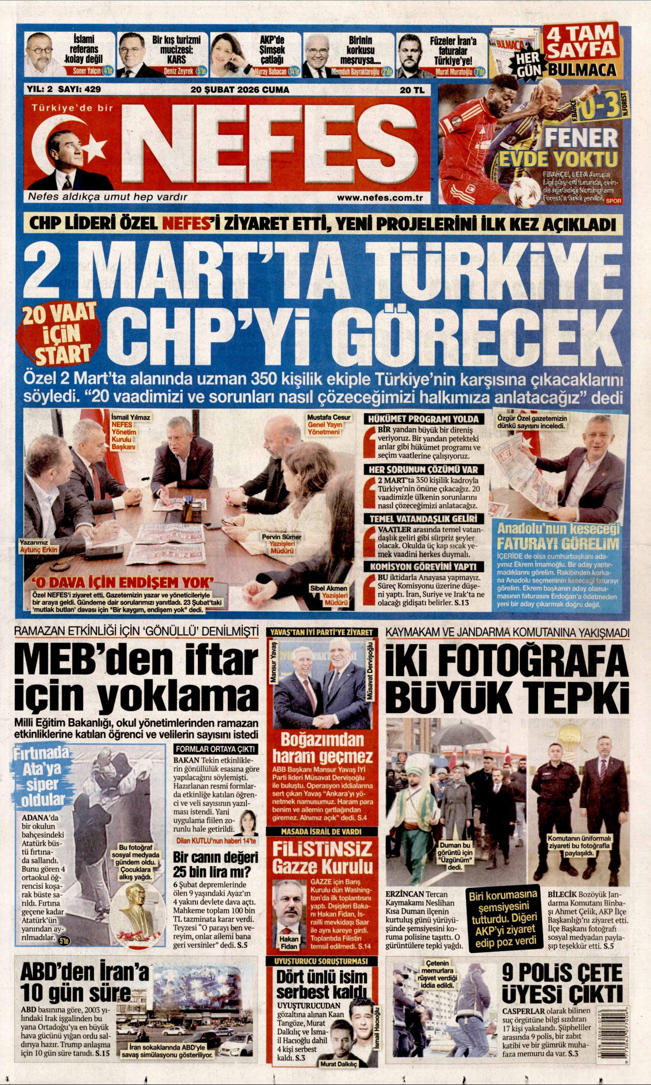 Gazeteler bugün ne yazdı? (20 Şubat)