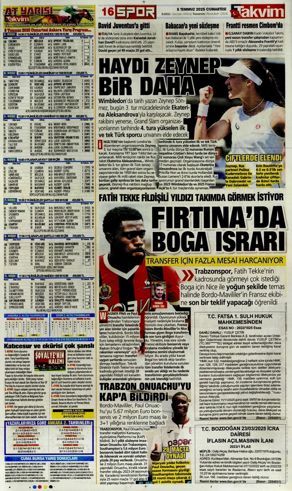 Kartal'a yeni Kara Boğa! Spor basını bugün ne yazdı? (5 Temmuz)