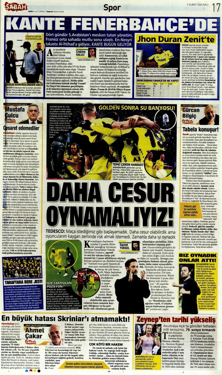Körfez'i yaktı! Spor basını bugün ne yazdı? (3 Şubat)