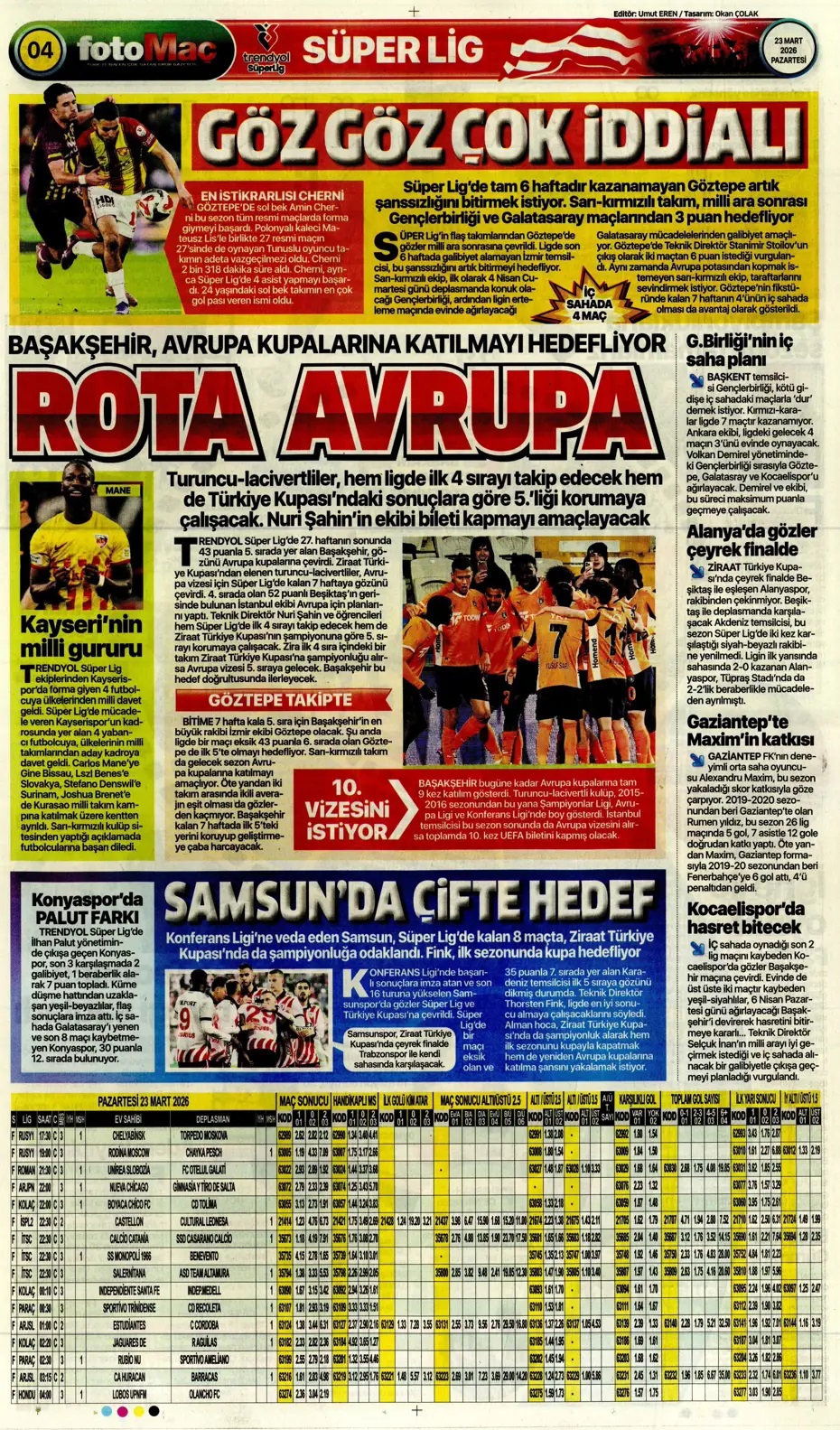 Sıra geldi derbiye! Spor basını bugün ne yazdı? (23 Mart)