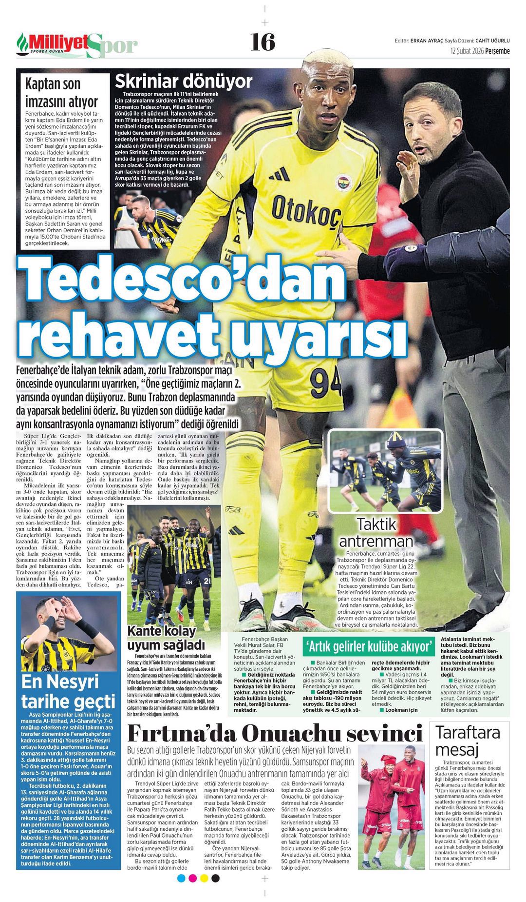 Tedesco'dan rehavet uyarısı | Spor manşetleri