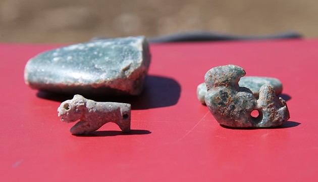 Geçmiş yıllardaki kazılarda aralarında yılan biçiminde olanların da yer aldığı çeşitli tiplerde, farklı ham maddelerden üretilmiş boncukların (manevi değeri yüksek obje) görüldüğünü ancak bu yıl ilk kez leopar ile insan ve akbaba şekilli süs eşyasını bulduklarını belirten Güldoğan, şöyle konuştu: