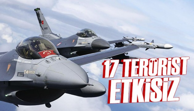 Milli Savunma Bakanlığı, Irak ve Suriye'nin kuzeyinde 17 teröristin etkisiz hale getirildiğini bildirdi.