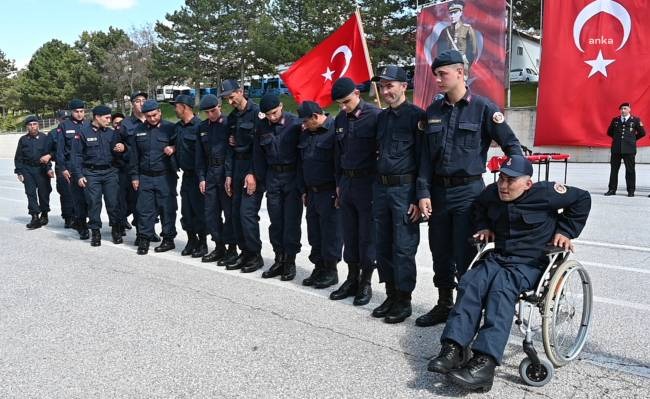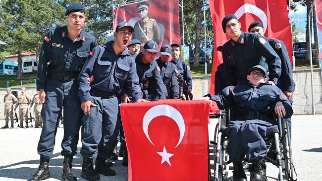 24 özel birey, Yozgat İl Jandarma Komutanlığı'nda bir günlük askerlik eğitimini tamamladı. Ardından düzenlenen yemin töreninde yemin edip terhis belgelerini aldılar.