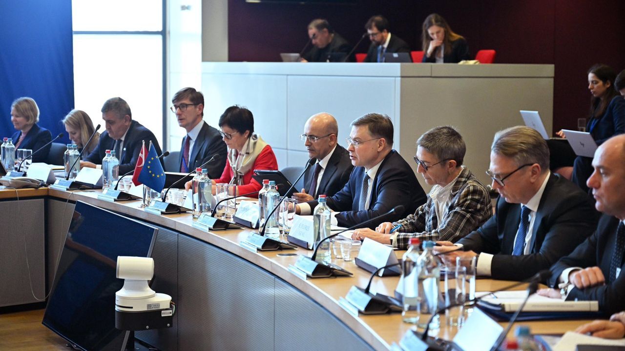 Türkiye-AB Yüksek Düzeyli Ekonomik Diyaloğu kapsamında dördüncü toplantının tamamlandığını bildiren Şimşek, beşinci toplantının gelecek sene Türkiye'de gerçekleştirilmesi kararı aldıklarını ifade etti. (AA)