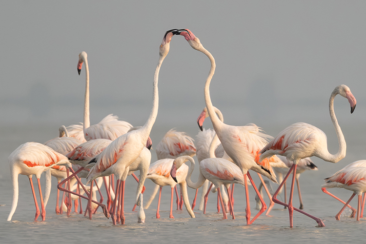 Flamingoların sudaki beslenmesi ve hareketleri kamerayla görüntülendi.