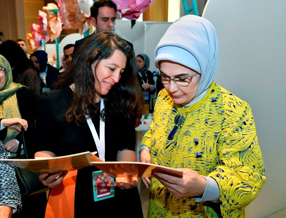 Beyoğlu'ndaki The Peninsula Oteli'nin fuaye alanında kurulan çarşıya gelen Emine Erdoğan, Aile ve Sosyal Hizmetler Bakanı Mahinur Özdemir Göktaş ve Dernek Başkanı Belma Sekmen ile stantları tek tek gezerek ürünleri inceledi. Erdoğan, stant görevlileriyle sohbet ederek, geliri derneğin sosyal yardım faaliyetleri ve projelerinde kullanılacak ürünlerden alışveriş yaptı.