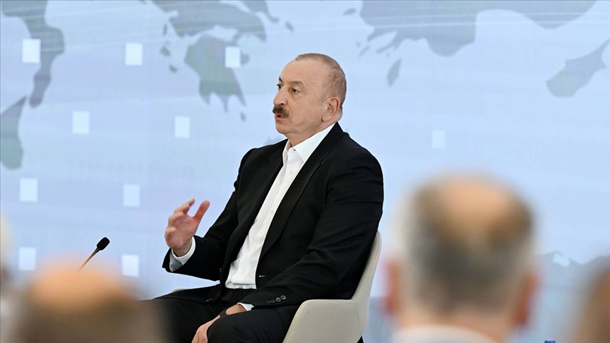 Aliyev, Ukrayna ile Rusya arasındaki savaşa değinerek, Ukraynalılara "Hiçbir zaman işgali kabullenmeyin." tavsiyesinde bulundu.