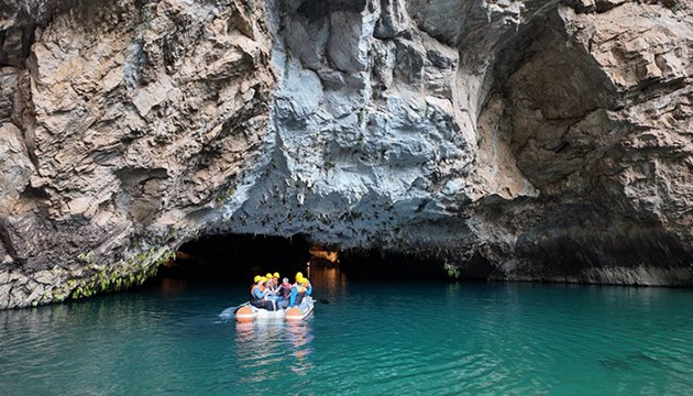 Su derinliğinin bazı yerlerde 40 metreyi bulduğu mağaraya gelen turistler, İbradı Belediyesinin profesyonel ekibinin önderliğinde etkileyici doğa oluşumunu botlarla görme imkanı yakalıyor.