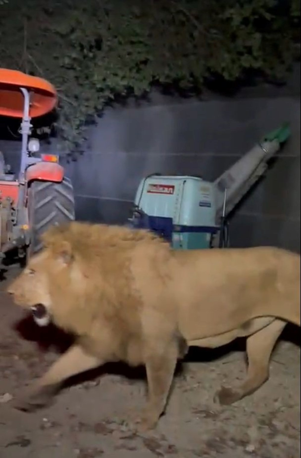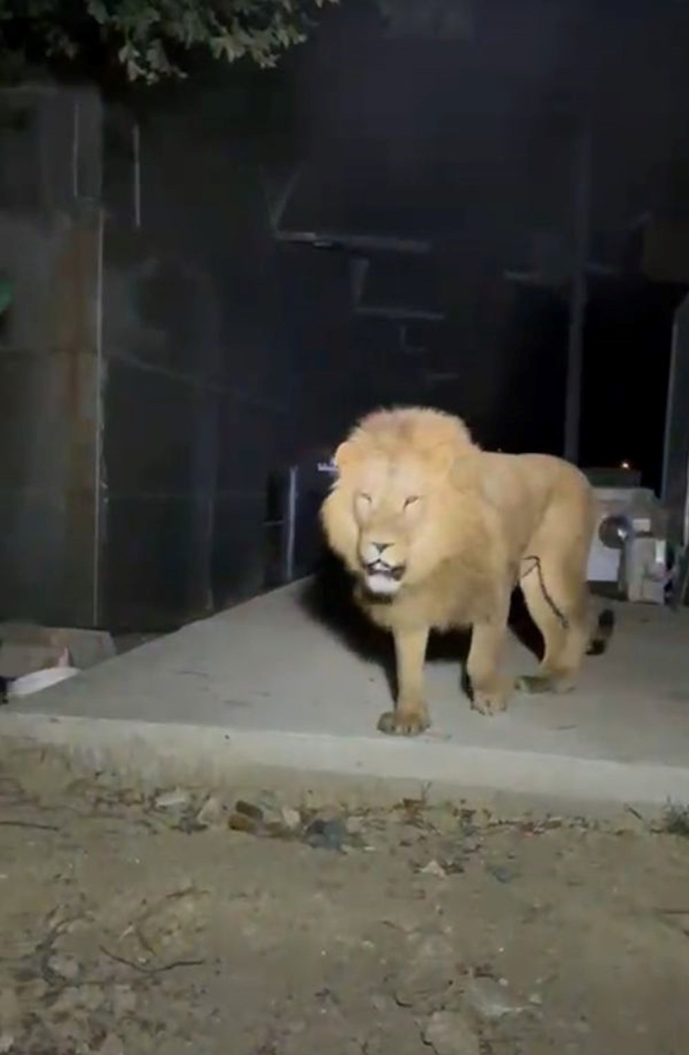 Öte yandan, Bilal Faruk Zeybek isimli genç evlerinin yakınındaki otluk alandan çıkarak uzaklaşan aslanı cep telefonu kamerasıyla görüntüledi.