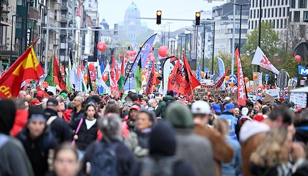 Belçika'daki bütün işçi sendikalarının çağrısıyla kamuda ve özel sektörde çalışanlar, federal hükümetin işsizlik ve emeklilik gibi sosyal harcamalarda planladığı kesintileri içeren kemer sıkma politikalarını protesto etmek için greve gitti.