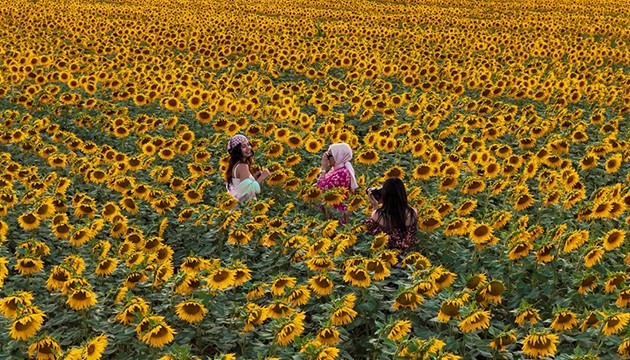 Profesyonel fotoğrafçılar tarafından sıkça ziyaret edilen ayçiçeği tarlaları, fotoğraf çektirmek isteyen vatandaşların da uğrak noktaları arasında yer alıyor.