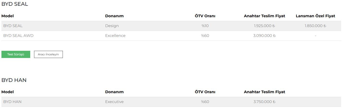 Türkiye'ye yeni gelen diğer modellerin fiyatlarını Emre Özpeynirci paylaştı. Paylaşıma göre fiyatlar şu şekilde: