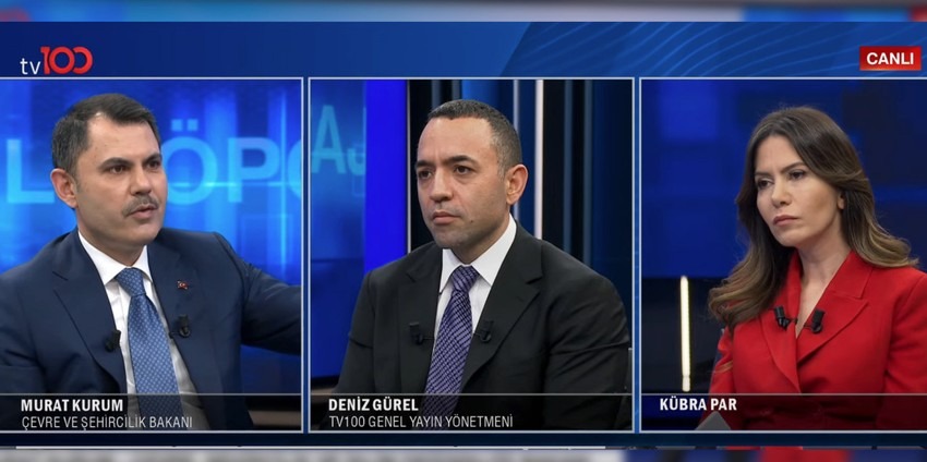 Çevre, Şehircilik ve İklim Değişikliği Bakanı Murat Kurum, tv100'de tv100 GYY Deniz Gürel ve Gazeteci Kübra Par'ın hazırlayıp sunduğu "Özel Röportaj"ın konuğu.