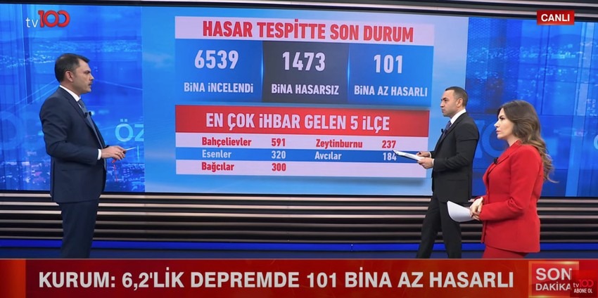 ??BAKAN KURUM, HASAR TESPİTLERİNİ İLK KEZ tv100 EKRANLARINDA AÇIKLADI
