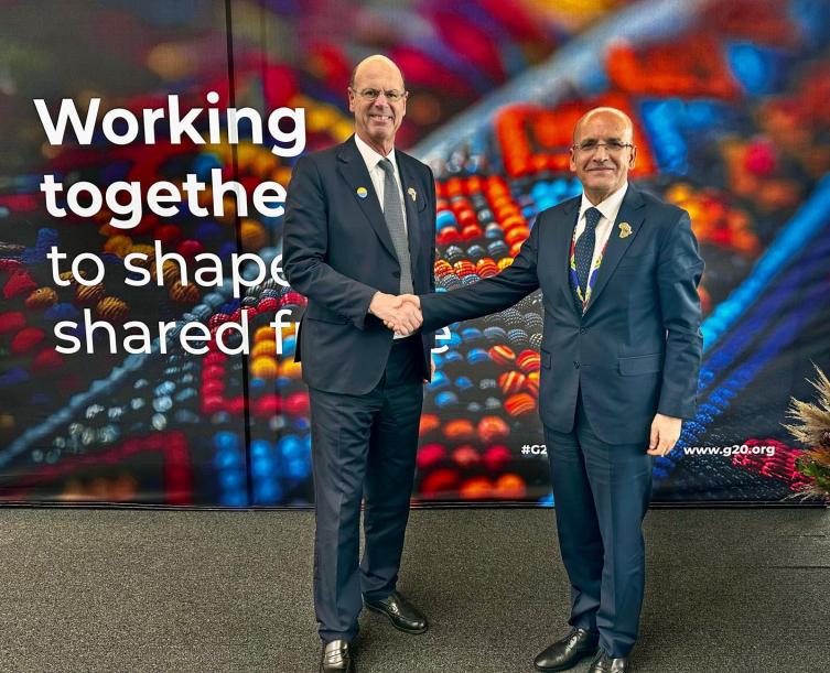 Hazine ve Maliye Bakanlığının sosyal medya hesabından, Şimşek'in Güney Afrika'nın Cape Town şehrinde düzenlenen G20 toplantıları çerçevesinde gerçekleştirdiği görüşmelere ilişkin paylaşım yapıldı.