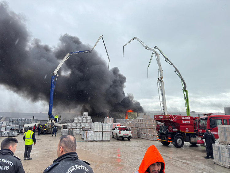 Ağır Sanayi Bölgesi Gümüşçeşme Mahallesi'ndeki bir yapı malzemesi firmasına ait depoda henüz bilinmeyen nedenle yangın çıktı.