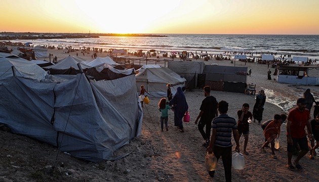 Saldırıların olduğu mahallelerden sahil bölgesine göç eden Filistinliler bulabildikleri boş alanlara derme çatma çadırlarını kurmuş durumda.