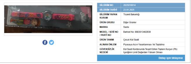 "Sasta" çocuk saatlerinin yüksek miktarda kurşun içerdiği, zıplama topu ve küçük oyuncakların ise "boğulma riski" taşıdığı belirtilmişti.