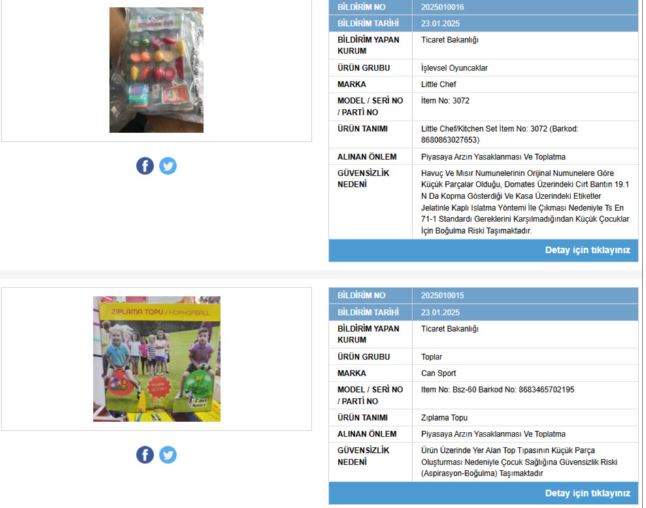 2 ÇOCUK ÜRÜNÜ DAHA YASAKLANDI