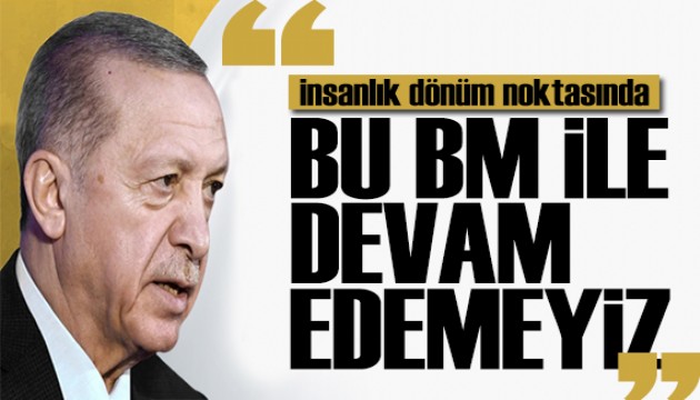 Bu BM'ye devam edebilir miyiz? Hayır. Tamamıyla bu Birleşmiş Milletler'in reforme edilmesi gerekmektedir. Dünya 5 daimi üyenin eline diline bırakılamaz. Süratle değişim gerekiyor. 5 daimi üye, 15 geçici üye, olmaz. Bu şekilde yönetilemez. Dünya değişti, değişiyor. Öyleyse bu değişime yönelik ciddi bir değişim şart. Kabullenmezler biliyorum.