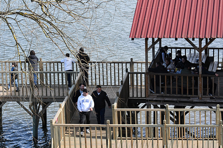 Bazı ziyaretçiler ise gölün hemen kenarında bulunan iskeledeki tesiste dinlenerek doğal güzellikleri cep telefonu kamerasıyla kaydetti.