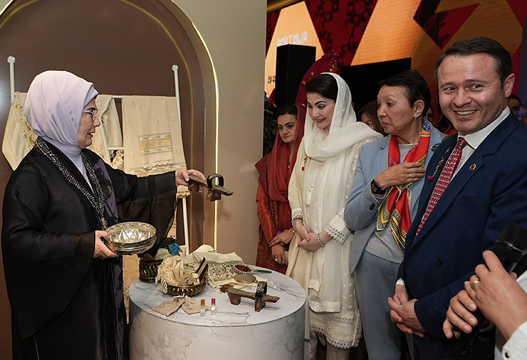 Bu kapsamda Emine Erdoğan, lider eşleriyle Olgunlaşma Enstitüleri'nde hazırlanan ve Anadolu'nun kültürel motiflerini içeren ürünlerin sergilendiği "Anadolu" sergisini ziyaret etti.