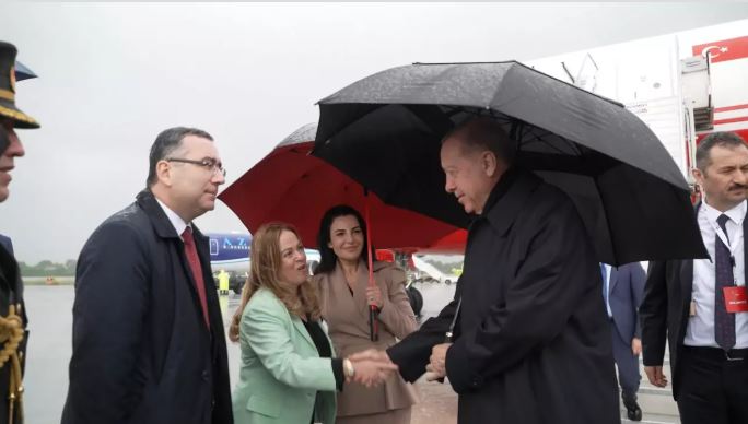 Cumhurbaşkanı Erdoğan'ı, Tiran Uluslararası Havalimanı'nda Arnavutluk Başbakan Yardımcısı Belinda Balluku, Türkiye'nin Tiran Büyükelçisi Tayyar Kağan Atay ve beraberindeki elçilik heyeti karşıladı.