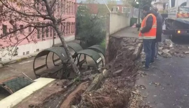 Kocaeli'nin Körfez ilçesindeki bir okulun önünde bulunan 7 metre yüksekliğindeki istinat duvarı gece saatlerinde çöktü.