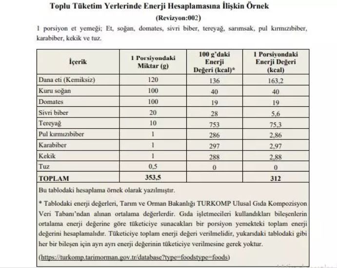 - Toplu tüketim yerlerinde gıda işletmecisi tarafından, tüketiciye sunulan gıdaların içeriğinde yer alan bileşenlere ve enerji değerine ilişkin tüketiciye zorunlu bilgilendirme yapılmasını düzenleyen 41.3, 41.4, 41.5 inci maddeleri ve uygulamaya ilişkin hesaplama örneği,