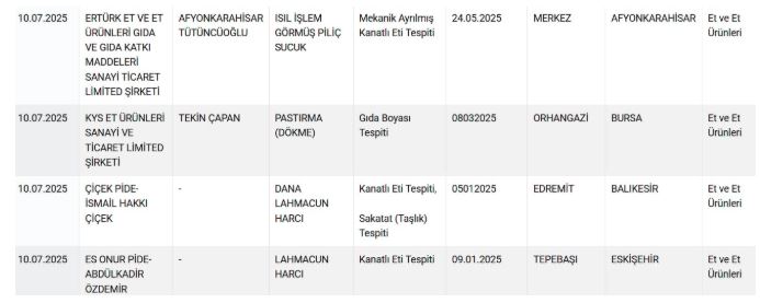 Tarım ve Orman Bakanlığı, ülke genelinde gerçekleştirdiği denetimlerin ardından gıda güvenliğini ihlal eden firmaları bir kez daha kamuoyuna duyurdu.
