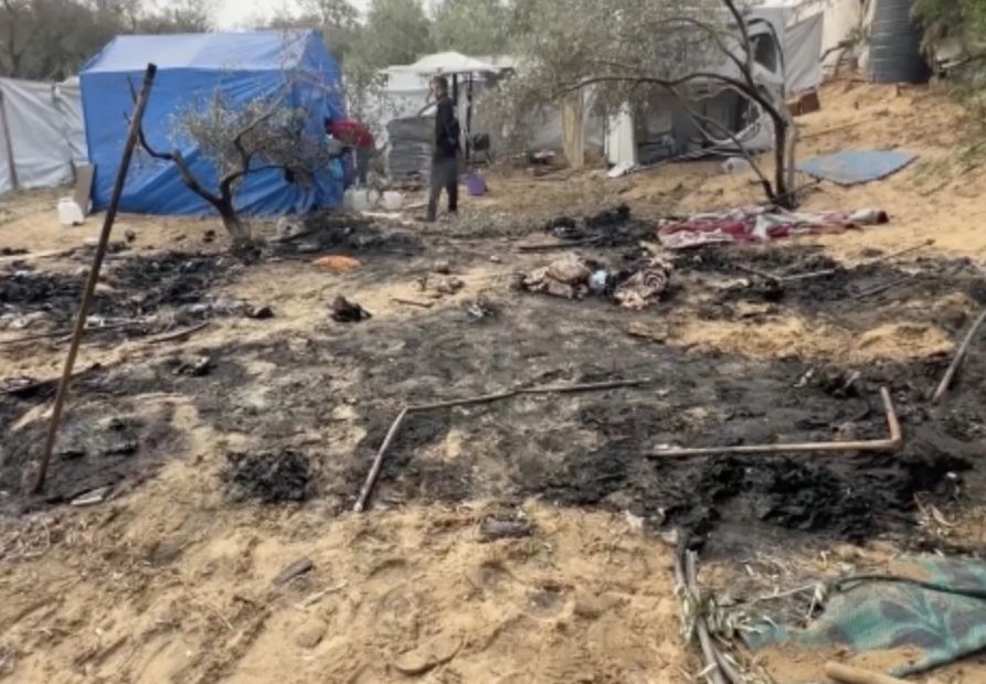 İsrail'in Gazze Şeridi'nin orta kesimindeki Nusayrat Mülteci Kampı'nın batısındaki el-Hasayine bölgesine düzenlediği hava saldırısında, çadırlar bombaların hedefi oldu.