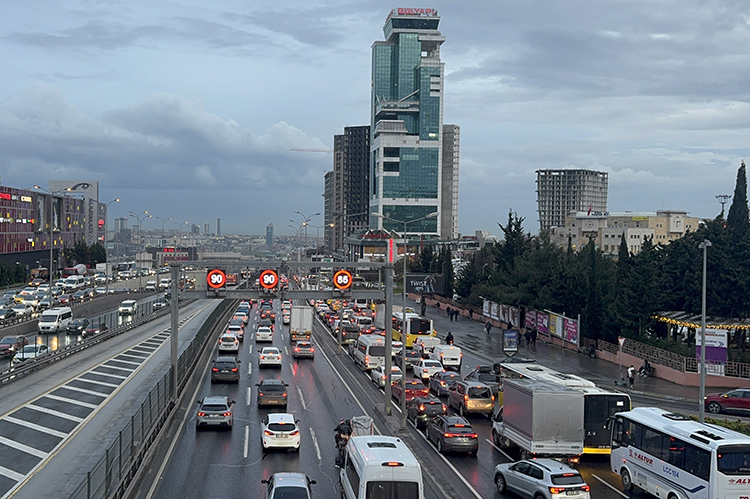İstanbul'da, haftanın son iş gününde akşam saatlerinde trafik yoğunluğu yüzde 76'ya kadar yükseldi.