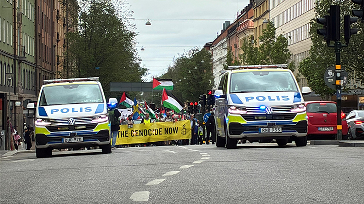 "Aşırı sağcı İsrail hükümetinin Filistinlileri ölüm kamplarına yani toplama kamplarına nasıl sürdüğünü görüyoruz. İsrail'in Filistinlilere gönderilen acil ve insani yardımları insanları vurup öldürmek için yem olarak nasıl kullandıklarını görüyoruz. İsveç hükümetinin, liberal demokrasinin gereği olarak uluslararası hukuka uygun şekilde İsrail'in soykırımına karşı tavır almasını istiyoruz. İsveç'in İsrail'e silah satışını durdurmasını ve soykırıma devam eden İsrailli şirketlere boykotun uygulanmasını, işbirliğinin geri çekilmesini talep ediyoruz. Filistin'deki soykırım suçlusu kişilerin Lahey'de yargılanması gerektiğini buradan haykırıyoruz."