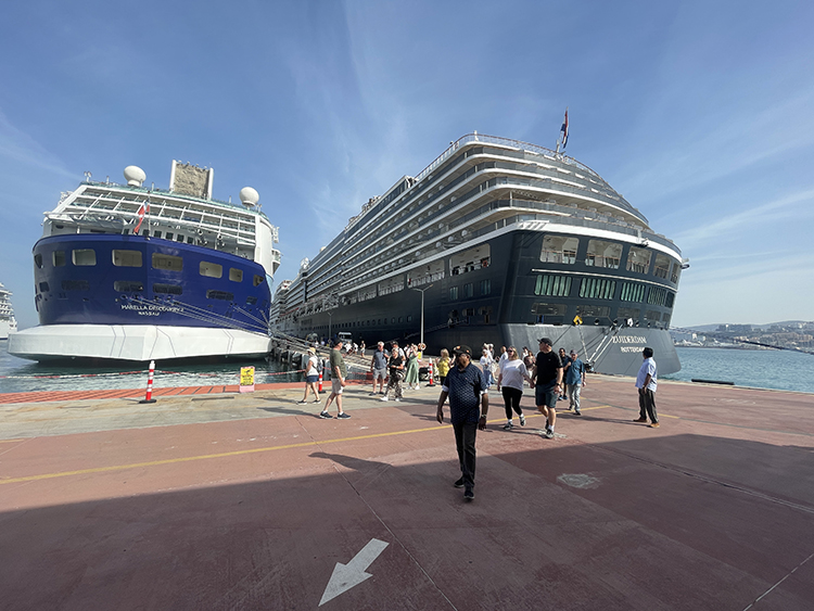 Gemilerden inen çoğunluğu ABD ve Avrupa ülkelerinden turistler, limanda halk oyunları gösterileriyle karşılandı.
