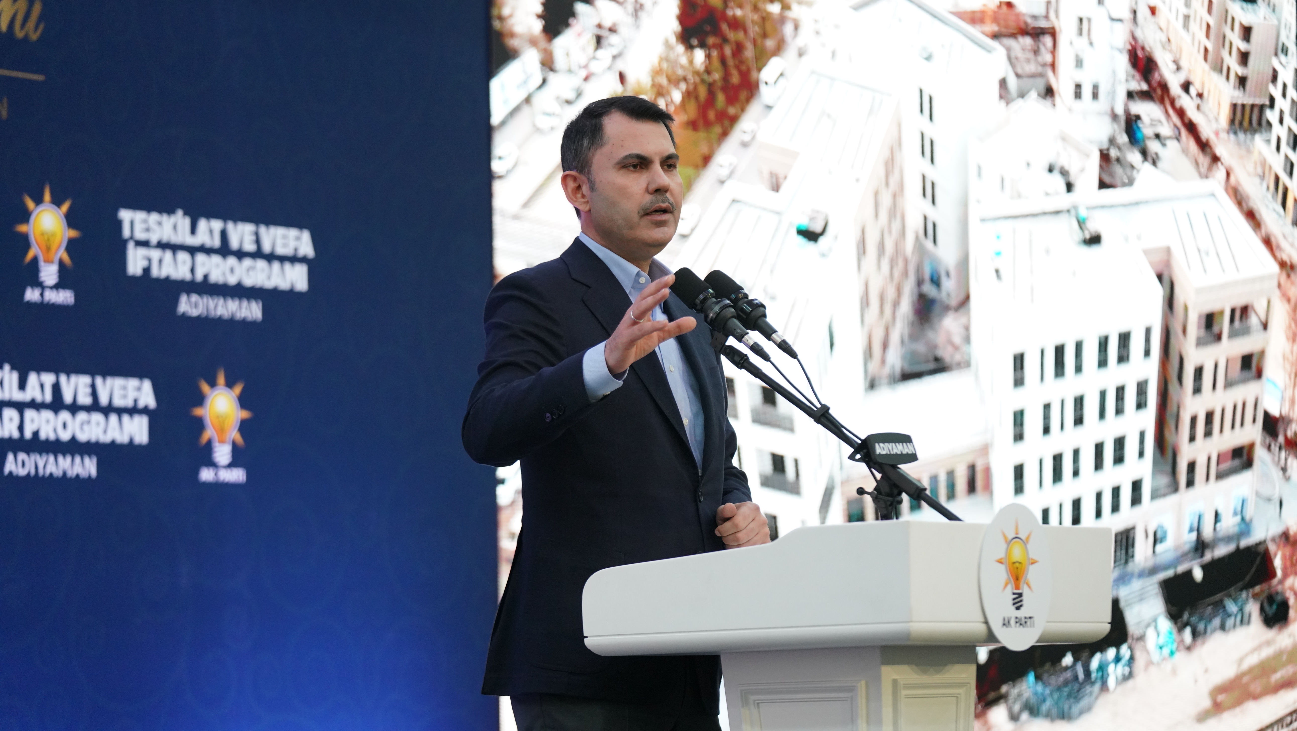 “AK Parti bir millete ve vatana vefa hareketidir” diyen Bakan Kurum, muhalefetin ise deprem bölgesinde siyasi fırsatçılık peşinde koştuğunu söyledi: Bugün sizler de AK Parti’nin neferleri olarak, deprem bölgesinde vefanın temsilcilerisiniz. Peki sizler burada, milletimizin yarınları için alın teri dökerken, adeta bir yeniden doğruluş destanı yazarken bu ülkenin ana muhalefeti ne yapıyor? Bir yaraya merhem oluyorlar mı? Olmuyorlar. Bir şehirde bir çivi çakıyorlar mı? Bir eser üretiyorlar mı? Bir hizmete omuz veriyorlar mı? Cevabı çok açık: Hiçbir işe katkı vermiyorlar. Biz bunların hizmete kabiliyetlerinin olmadığını biliyorduk ama tahammülleri de olmadığını yeni öğrendik. Bunlar lafa geldi mi mangalda kül bırakmazlar ama “hadi hizmetin yok, bari gel bu emekçileri takdir et” desek, dut yemiş bülbüle dönerler. Bir de arada bir deprem bölgesine gelip siyasi fırsatçılık peşinde koşarlar, afetzede kardeşlerimizin moralini bozarlar. Adıyaman şahit olsun, her kim deprem bölgesinde fırsatçılık yapmaya kalkarsa karşısında beni bulur. Her kim benim afetzede kardeşlerimin moralini bozmaya kalkışırsa karşısında bu kardeşinizi, bu evladınızı bulur.