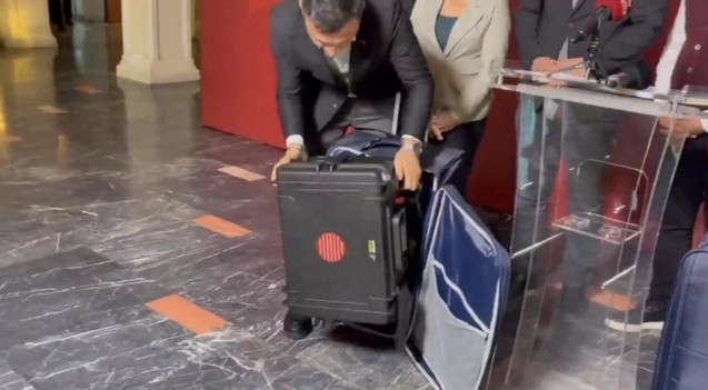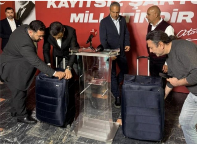 CHP İstanbul İl Başkanı Özgür Çelik, yaptığı basın toplantısında valizlerin içinde ne olduğunu gösterdi.