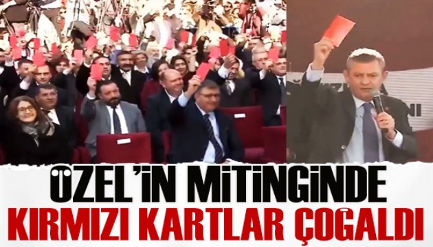 Özel, İzmir'in Kemalpaşa ilçesinde yaptığı mitingte kırmızı kart göstermeye devam etti. Özel, "İstanbul Sözleşmesi'nden bir gecede çıkıp kadına karşı şiddeti artıranlara kırmızı kart" dedi.