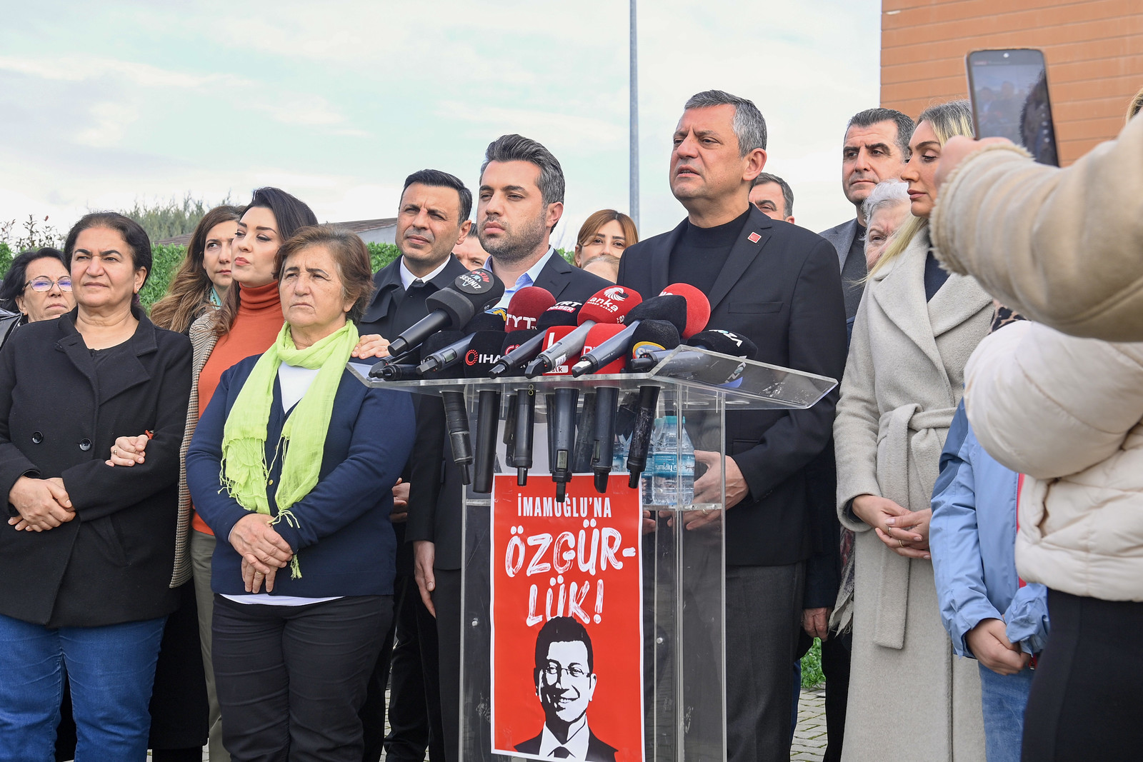 Bugün Aziz İhsan Aktaş suç örgütünün iftiralarına muhatap olan aileler burada. İstanbul Büyükşehir Belediyesi operasyonuna muhatap olan aileler burada. Ve haklarında henüz iddianamesi yazılmamış belediye başkanlarımızın, belediye çalışanlarımızın aileleri burada. Üç ana kategoride mağdur ailelerle bugün karşınızdayız. Bir an önce iddianamesi yazılmamış arkadaşlarımızın, örneğin Gaziosmanpaşa Belediyesi.