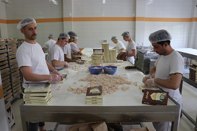 Lokum imalathanesinde gıda mühendisi olarak görev yapan Mete Mert Dönmez de ilçenin turistik bir yer olduğu için bayram öncesi lokum üretiminin arttığını kaydetti.