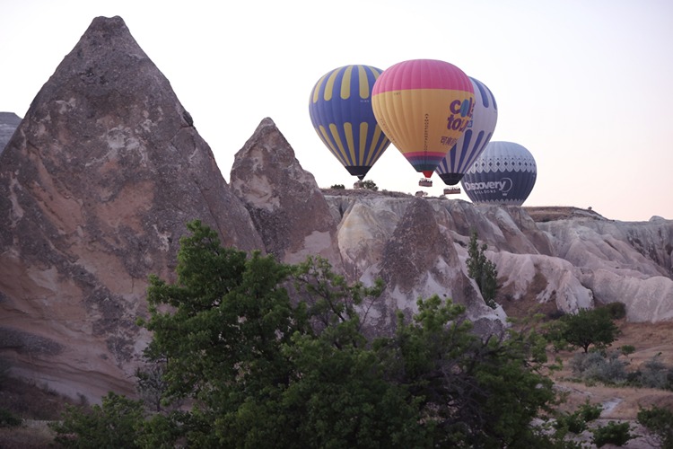 Onlarca sıcak hava balonu peribacaları üzerinde süzülürken, manzaraya ahenk kattı.