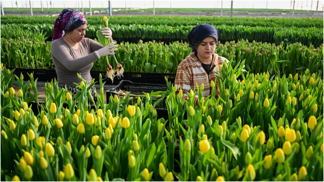 Yurt dışından getirilen soğanlar, dik olarak su kaplarına yerleştiriliyor ve bu şekilde soğuk hava deposunda bir ay kadar bekletiliyor. Köklendikten sonra seraya çıkarılan laleler, su dolu kasalar içerisinde bekletiliyor ve büyüdüklerinde hasat ediliyor.