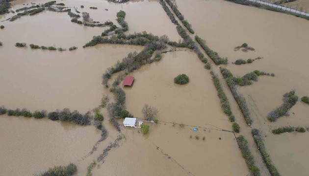 Bölgedeki su altında kalan tarım arazileri dronla kaydedildi.