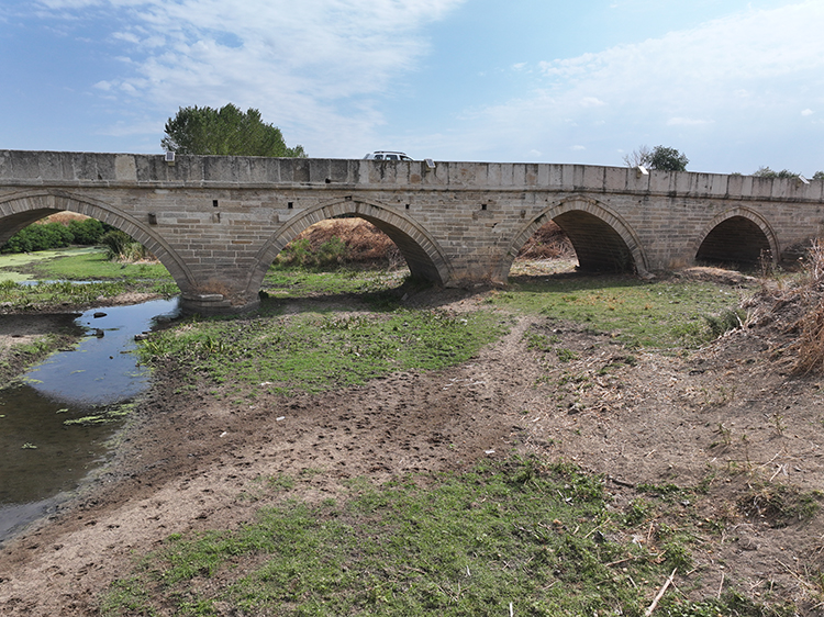 Akışın yavaşlaması ve su seviyesinin düşmesiyle Sarayiçi bölgesine geçişi sağlayan Kanuni Köprüsü ile Yalnızgöz Köprüsü çevresinde su akışının durduğu gözlendi.